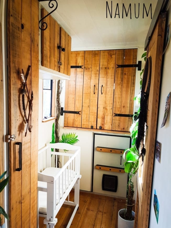 Wie oben erwähnt, möchten wir nächsten Winter nach Marokko fahren und dort einige Monate bleiben. Wir möchten diese Zeit nutzen, um eine Nische über der Kabine zu bauen. Auf diese Weise können wir dem Kleinen unser aktuelles Zimmer geben. Dann möchten wir auf Reisen eine kleine Einnahmequelle entwickeln. Annabelle fängt an, DIY-Baby-Kits herzustellen und ich arbeite mit Holz!