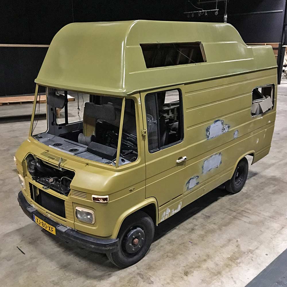 We searched for a van and found one which needed a lot of work. The van was only metal outside and an engine. The whole interior was removed, even the windows.